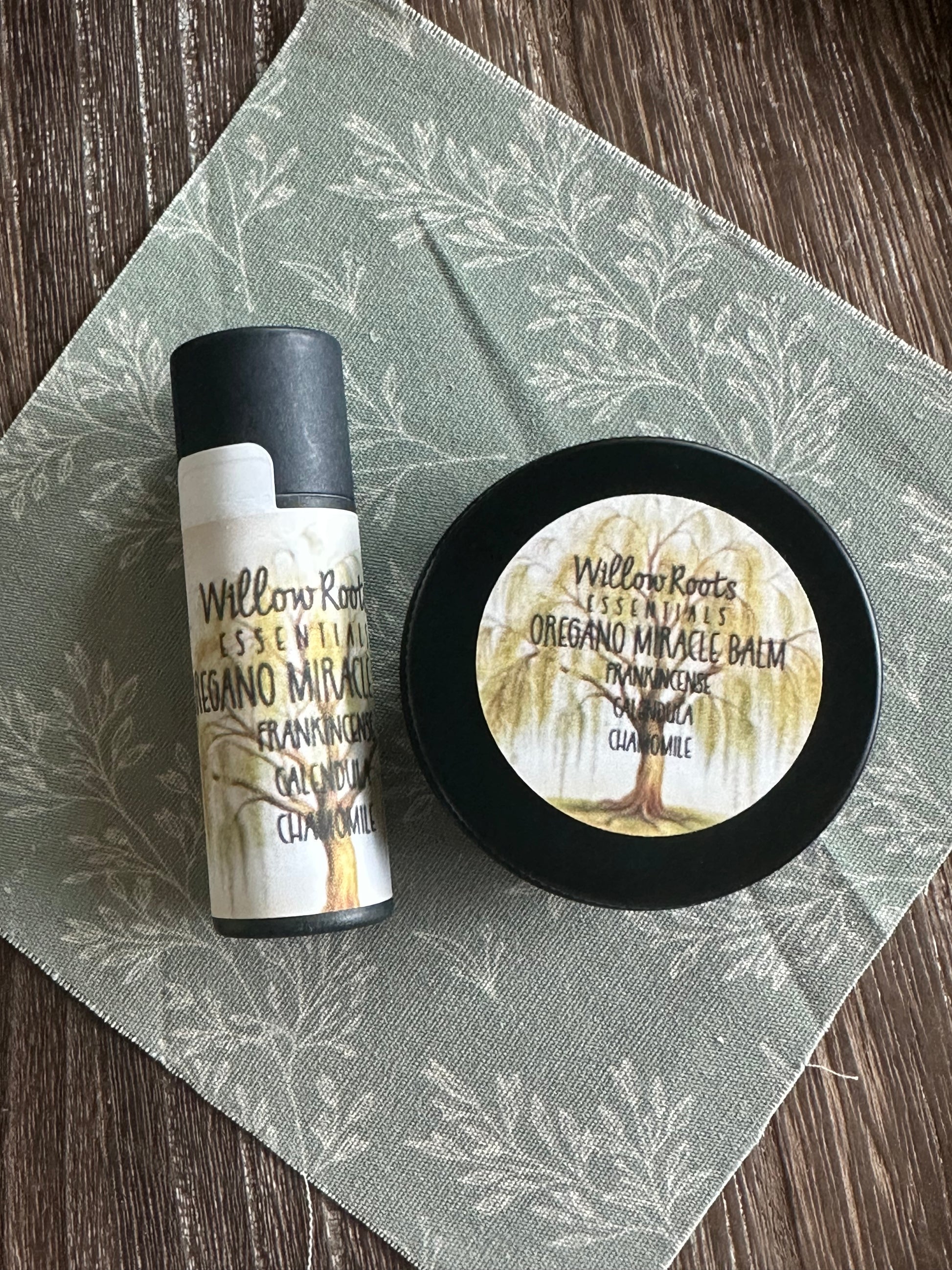 ingredients : organic oregano oil, organic shea butter, organic beeswax, organic frankincense, calendula, & chamomile essential oils
