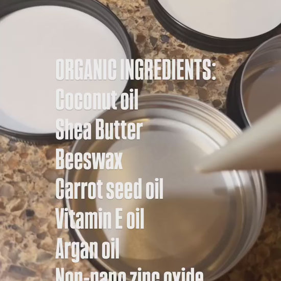 SUN BALM -Organic non-nano zinc oxide sun care balm - rubs in nicely, no white residue left on skin